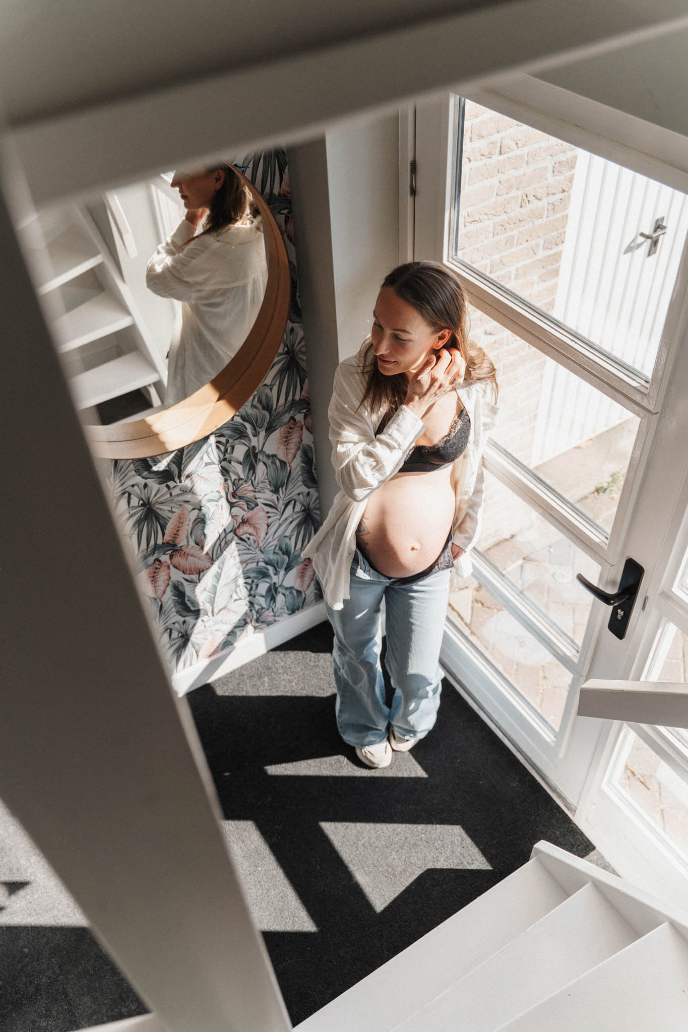 Tijdens de sessie sta jij centraal (partner, huisdier of kinderen zijn super welkom!), precies zoals je bent. Geen 1-in-een-dozijn beige leenjurk, maar jouw eigen kleding die betekenis voor jou heeft. Jouw eigen kleding zorgt ervoor dat de foto’s een persoonlijke herinnering worden die je echt terugbrengt naar deze tijd. Daarom ben ik geen voorstander van een cliënt closet, hoe mooi die foto’s dan ook zijn. Zwanger zijn van jullie kindje, in het huis dat jullie hebben gekozen, met jullie eigen spullen en omgeving. Dát maakt jullie foto’s uniek en persoonlijk.